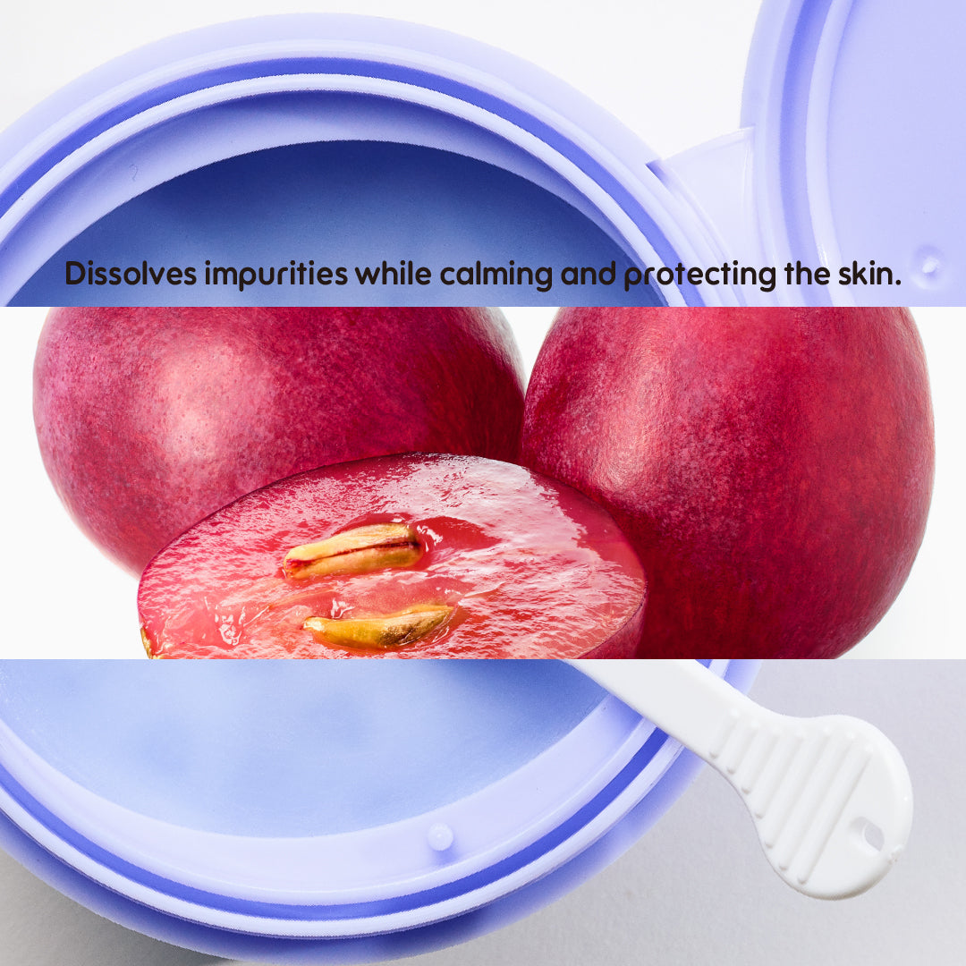 Bálsamo limpiador suave con Aceite de Semilla de Uva, Aceite de Macadamia y Vitamina E, que elimina eficazmente maquillaje e impurezas mientras protege la barrera natural de hidratación de la piel.